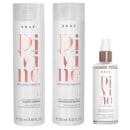Kit com shampoo e condicionador para cabelos com frizz. O Kit Braé Divine confere disciplina, desembaraço e hidratação aos fios durante o dia a dia.