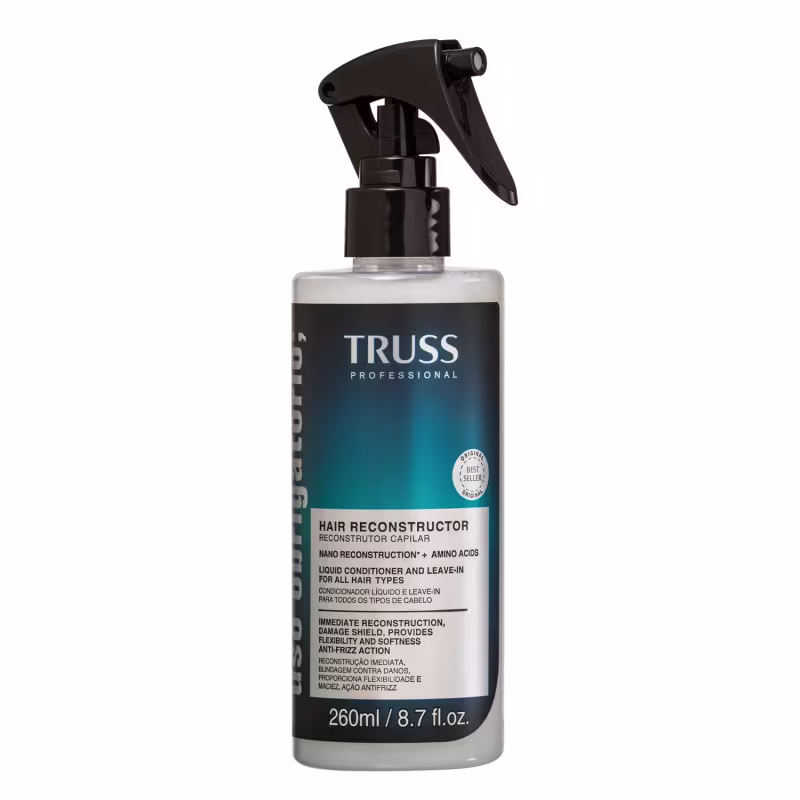 TRUSS Uso Obrigatório - Tratamento Líquido 260ml: um tratamento de reconstrução com e sem enxágue, que pode ser usado como máscara ou finalizador, para blindagem contra danos e ação condicionante.