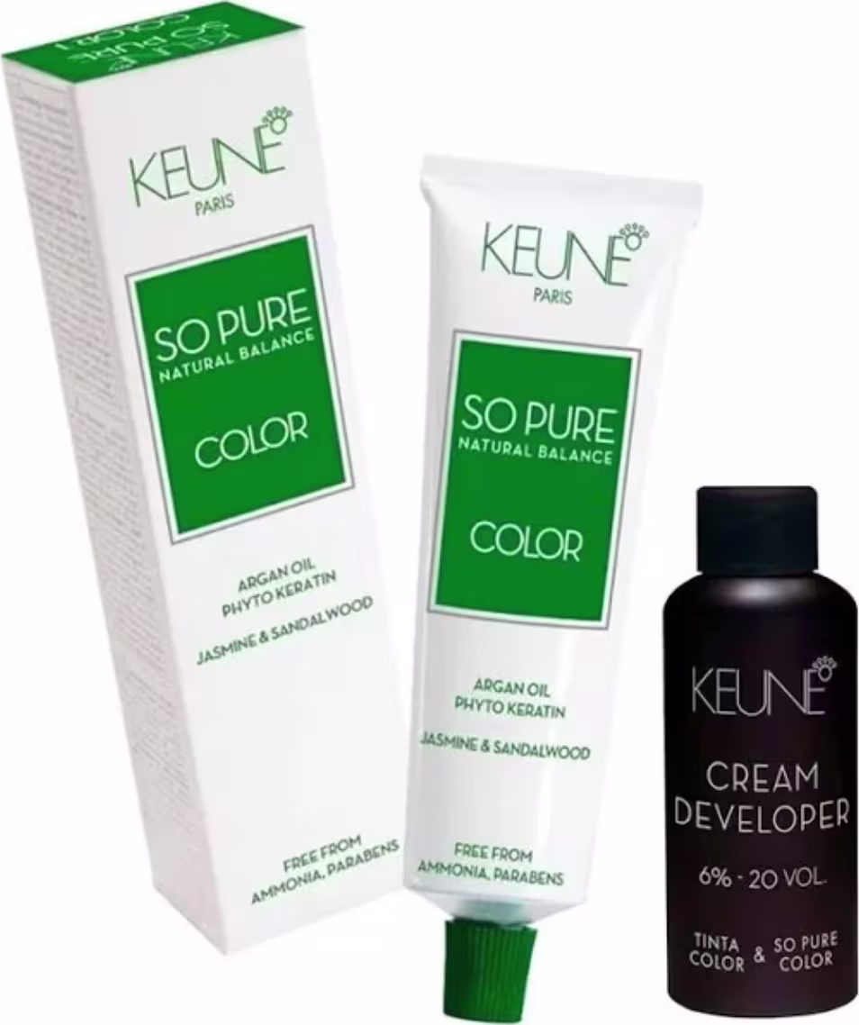 A Keune inspirou-se na natureza e usou muita tecnologia para criar uma linha que colore de forma suave e poderosa. A So Pure Color uma coloração permanente que cobre até 100% dos fios brancos, é totalmente livre de amônia e de PPD Parafenilenodiamina (grande causador de alergias) apresentando baixa incidência de reações alérgicas, possui ingredientes altamente condicionantes como Fitoqueratina, Óleo de Argan e extratos 100% naturais.