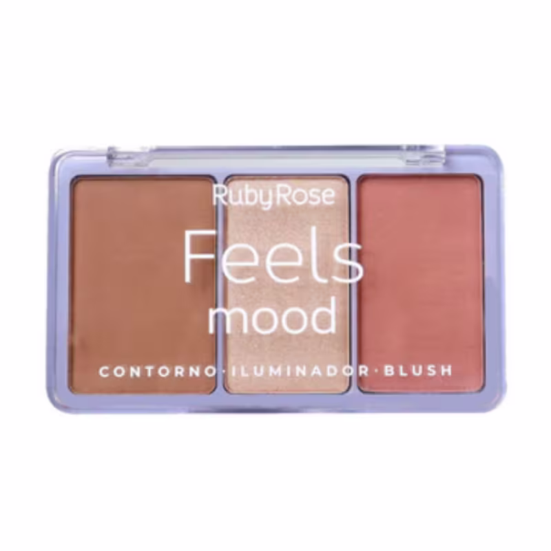 Para uma pele de milhões conheça a paleta Feels Mood. É uma paleta multifuncional contendo 1 Contorno, 1 Iluminador e 1 Blush Para criar diferentes looks!