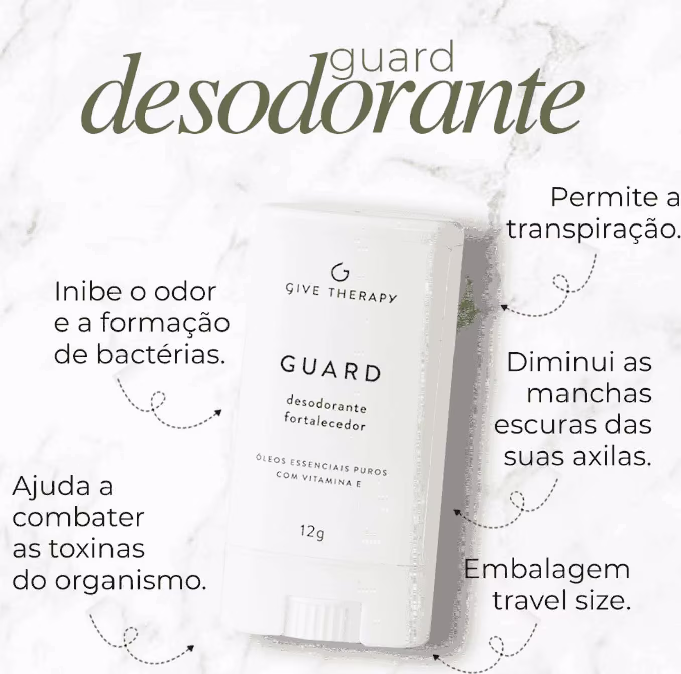 Em sua composição, o GUARD desodorante fortalecedor possui, ainda, manteigas vegetais de cupuaçu, cacau e palma, óleo de coco e de arroz, vitamina E, extratos de hamammelis, arnica e bardana, além de águas florais, que completam o cuidado de hidratação e clareamento que as axilas merecem, maximizando a sensação de bem-estar como um todo. Ele deixa uma sensação confortável e resfrescante, com efeito seguro.