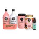 O Kit Meu Crespo Poderoso Hidratado e Nutrido contém 5 produtos que juntos oferecem cuidados completos com óleo de rícino para promover hidratação profunda, nutrição e fortalecimento dos cabelos.