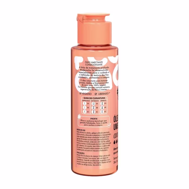 O Óleo de Umectação #todecacho Coco Puro possui óleo de coco puro e natural em sua fórmula que garante nutrição extrema, regeneração da fibra e maciez. Além disso, aliado à tecnologia PROFIX, proporciona força intensa, revitalização completa e combate ao frizz.