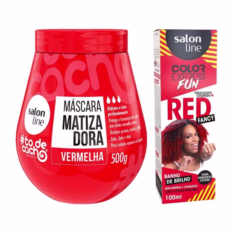 O Kit Vermelhão do Poder + Color Express Fun Fancy Red conta com 1 Máscara de Hidratação Matizadora Vermelha #todecacho, que garante cabelos fortes e saudáveis, além de um tom revitalizado, e 1 Tonalizante Color Express Fun Fancy Red que promove um tom vermelho vibrante, ao mesmo tempo que hidrata, não agride os fios, além de ser um tonalizante sem amônia e oxidantes.