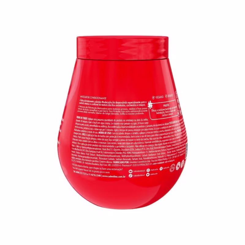 A Máscara Matizadora possui fórmula enriquecida com frutas vermelhas e goji berry para uma hidratação profunda, manutenção da cor do cabelo, ação para umectação capilar e maciez completa.