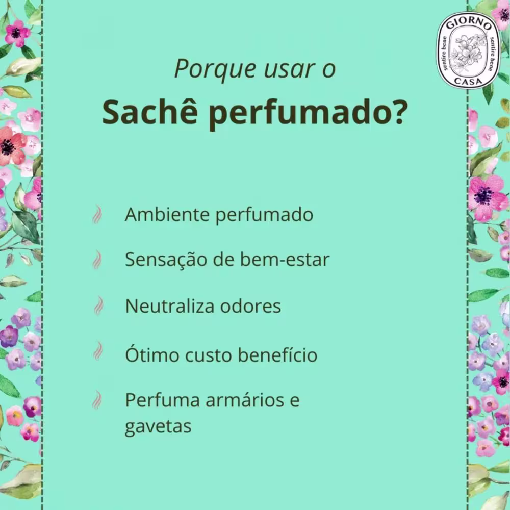 O Sachê Giorno Casa Verbena é a escolha perfeita para perfumar diversos ambientes. Seja no carro, na bolsa, no armário ou na gaveta, a fragrância da verbena deixará tudo mais agradável.