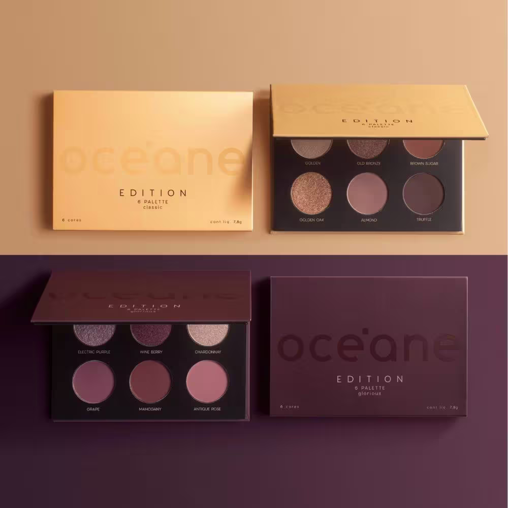 Quer um olhar marcante e poderoso? O Kit Paleta de Sombras Glorious + Paleta de Sombras Classic Océane Edition é perfeito para elaborar maquiagens lindas, cheia de pigmentação e fixação em qualquer lugar. A 6 Palette Edition da Océane traz duas paletas de sombras que combinam fixação e alta pigmentação, entregando um resultado espetacular com cores lindas para o seu dia a dia. Seja na rotina de trabalho, em um evento social ou naquela festa ultra badalada, essas paletas são ideais para criar olhares marcantes, sobrepondo camadas e combinando cores.
