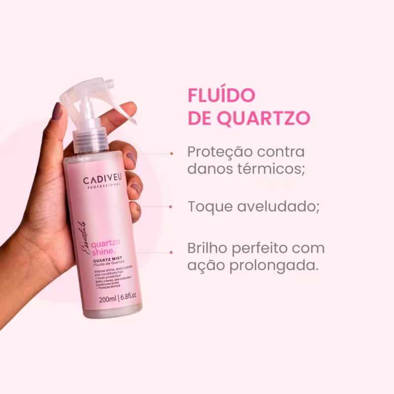 O Fluido de Quartzo, é um ótimo aliado para facilitar o processo de escovação, promove toque sedoso aos fios e protege a cor dos cabelos. Fórmula ultraleve que alinha enquanto doa brilho excepcional, eliminando o efeito ressecado. Possui ativos que atuam diretamente na prevenção do frizz e proteção dos fios. Agora com 2x mais Quartzo Rosa para um brilho ainda mais intenso!