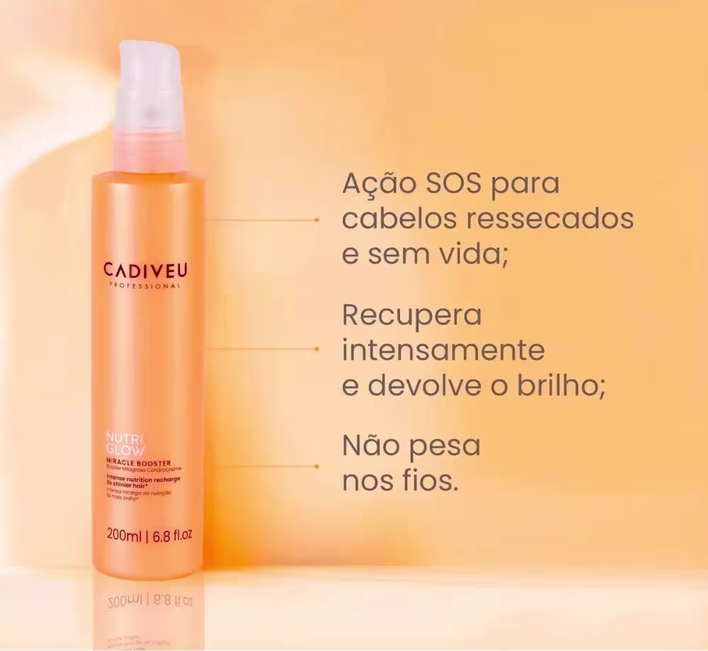 Este poderoso Booster Milagroso funciona como um SOS para cabelos extremamente ressecados, sem brilho e com as pontas espigadas. Sua fórmula conta com uma fórmula riquíssima para nutrir intensamente os cabelos mais secos e sem brilho. O resultado é um cabelo muito macio, com movimento, cutículas seladas e controle do frizz, com fios 8x mais brilhantes. Dicas de uso: Use antes de ir para academia para proteger as pontinhas do suor, durante o dia-a-dia de home office, durante a noite ou quando você achar que seu cabelo precisa de uma dose extra de nutrição e brilho!