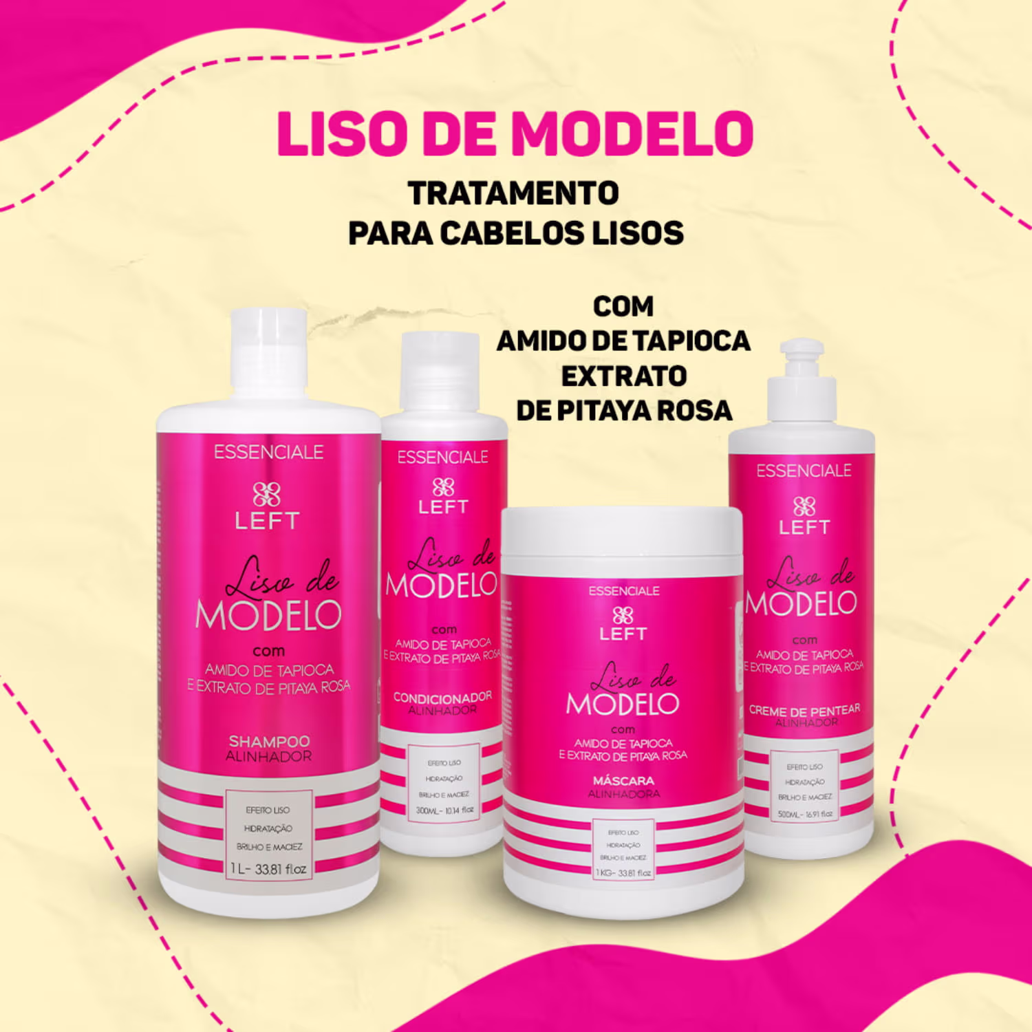 Não sei o CEPA linha Essenciale Liso de Modelo possui como ativos principais Amido de Tapioca e Extrato de Pitaya Rosa, responsáveis por alinhar, doar brilho, maciez ao fio por completo, de forma eficiente, conferindo um liso imediato e diminuindo o frizz. Além disso, o uso contínuo do Kit Liso de Modelo garantirá cabelos mais saudáveis, hidratados e alinhados.