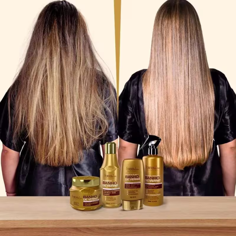 Para um melhor resultado utilize a Linha completa Banho de Verniz Forever Liss.
