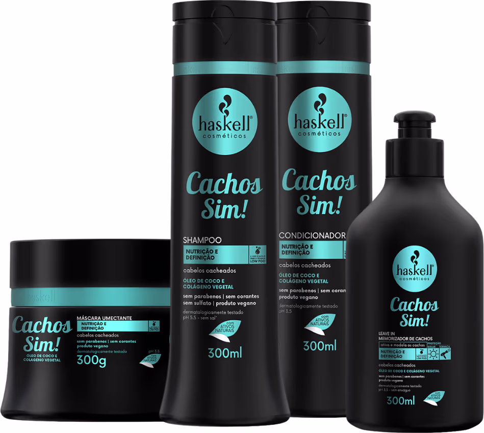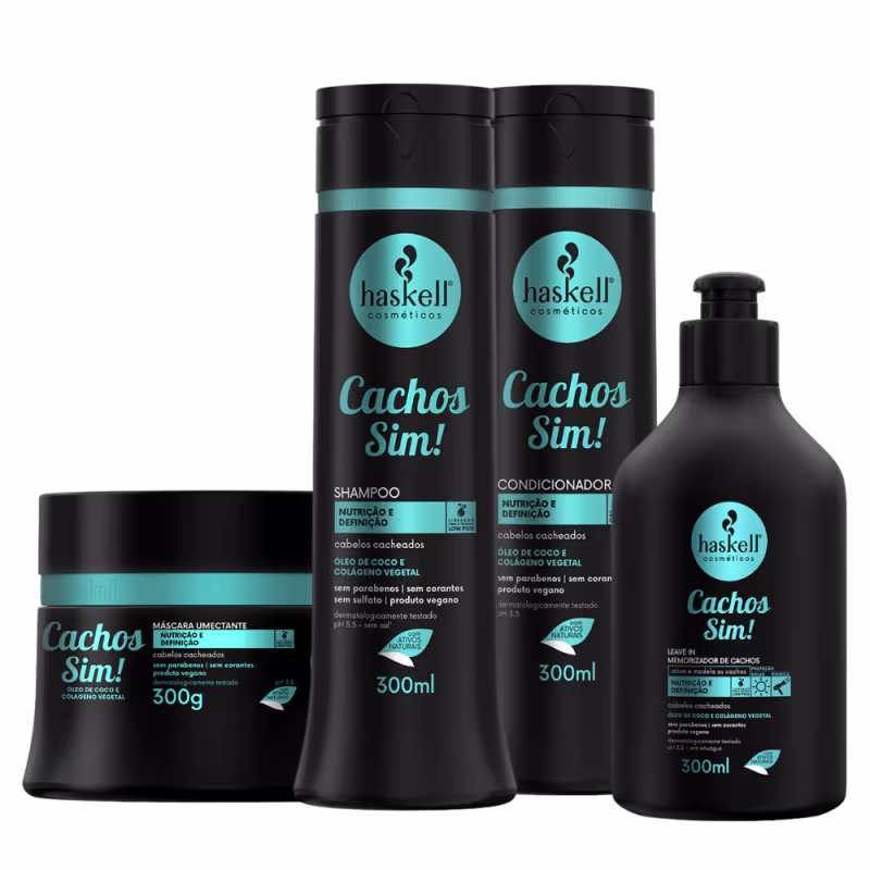 Kit Haskell Cachos Sim Shampoo Condicionador Máscara Leave-in 300ml Ver mais ❯
