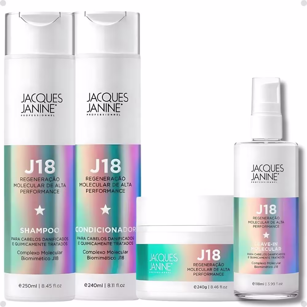 O Condicionador J18 foi desenvolvido especialmente para cabelos danificados e quimicamente tratados. Atua nas camadasmais profundas da fibra capilar, reestruturando os fios em apenas 4 minutos. Reconecta as cadeias Polipeptídicas quebradas, além de restaurar a força e elasticidade do cabelo.
