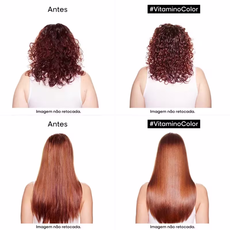 Aplicar no cabelo lavado e úmido. Enxaguar. Em caso de contato com os olhos, lavá-los imediatamente com água. * Teste Instrumental com o uso do Shampoo Vitamino Color + Condicionador Vitamino Color