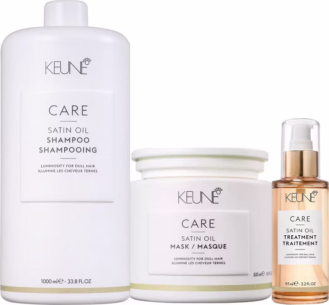 O Kit Keune Satin Oil conta com a nova tecnologia com complexo de minerais essenciais que levam a nutrição que os fios precisam para conservar a hidratação por mais tempo. Fórmulas que não deixam o cabelo pesado e proporcionam luminosidade e maciez intensas.
