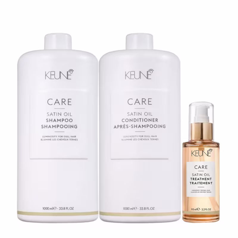 Kit Keune Satin Oil Shampoo 1000ml + Condicionador 1000ml + Óleo 95ml