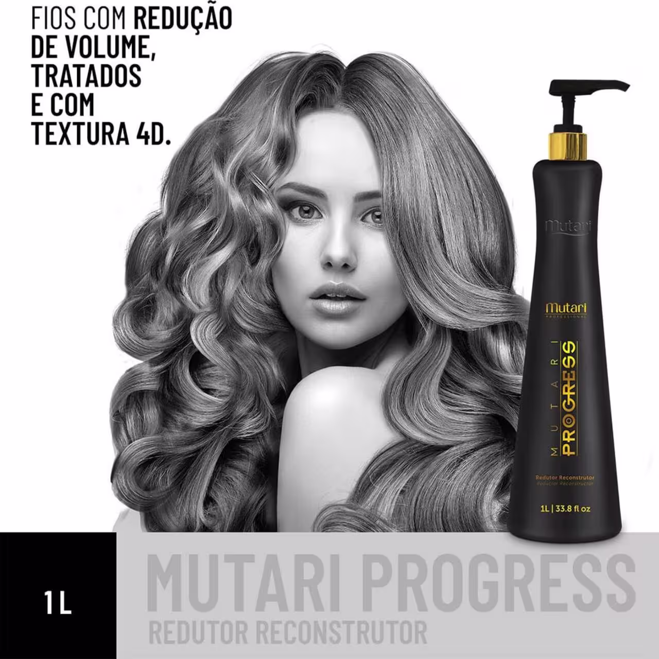 Procurando uma progressiva que promova tratamento durante o processo da transformação?. Que diminua a agressão da química nos fios? O Redutor Reconstrutor Mutari Progress 1L é a solução. Sua fórmula enriquecida com ativos de alta performance (ácido hialurônico, extrato de bambu, bio ester de manteiga de karité e (queratina hidrolisada) garante fios saudáveis e com muito brilho. Muito versátil, o Redutor Mutari Progress possibilita realizar quatro procedimentos com resultados diferentes, como por exemplo: alisar totalmente, abertura de cachos, efeito BTX ou eliminar o frizz. Ideal para atender às necessidades dos clientes de forma prática, rápida, segura e com desempenho elevado. Ficou interessada? Confira abaixo mais informações sobre esse produto inovador.