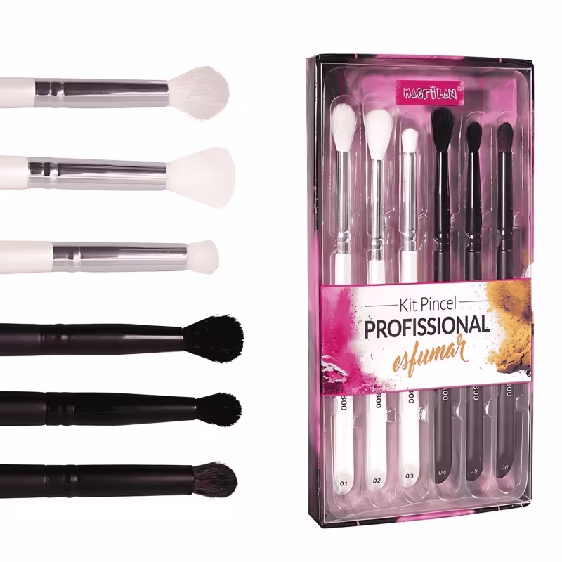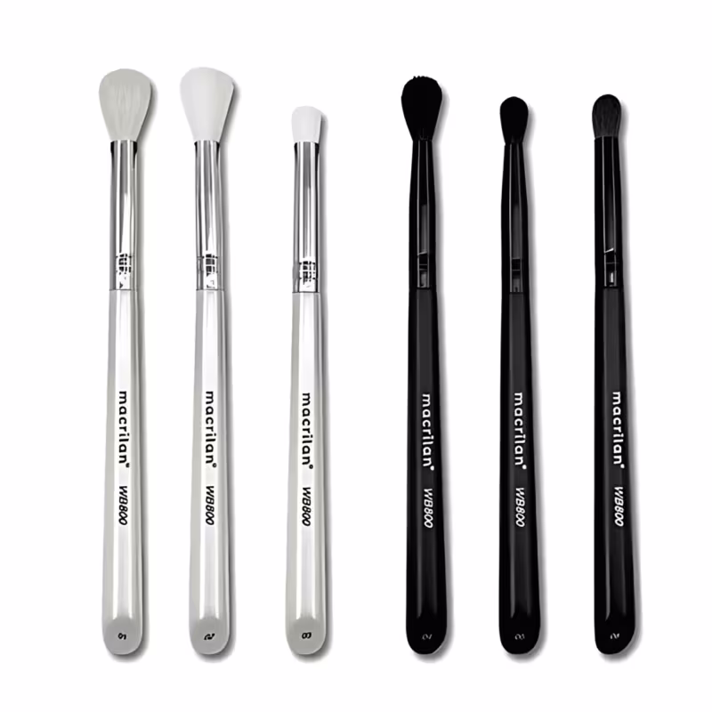 Kit Pincel Macrilan WB800 especialmente desenvolvido para aplicação profissional de sombras. Utilize esses pincéis para aplicar e esfumar sombra nas pálpebras e no côncavo dos olhos, misturando e suavizando cores até obter o efeito desejado. Com cerdas naturais e sintéticas super macias, de formato especial para um acabamento impecável.