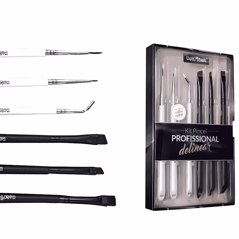 Kit Pincel Macrilan WB700 especialmente desenvolvido para aplicação profissional de delineador. Utilize esses pincéis para traçar linhas e delineados na linha superior ou inferior dos olhos e para preencher e delinear as sobrancelhas. Com cerdas sintéticas super precisas, os pincéis têm formato especial para um acabamento impecável.