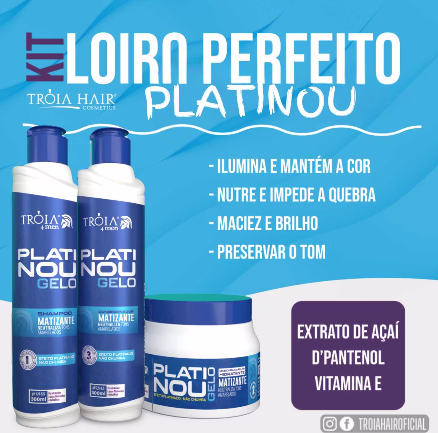 O Kit Platinou Gelo foi desenvolvido especialmente para oferecer um cuidado completo e intensivo aos cabelos platinados, garantindo um efeito gelo impecável e duradouro. Ideal para quem deseja manter o tom platinado perfeito, com brilho gelado e sem abrir mão da saúde e vitalidade dos fios. Com uma fórmula nutritiva e rica em ingredientes ativos, este kit fortalece os cabelos, proporcionando maciez, hidratação profunda e prevenção da quebra.