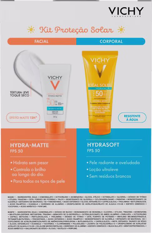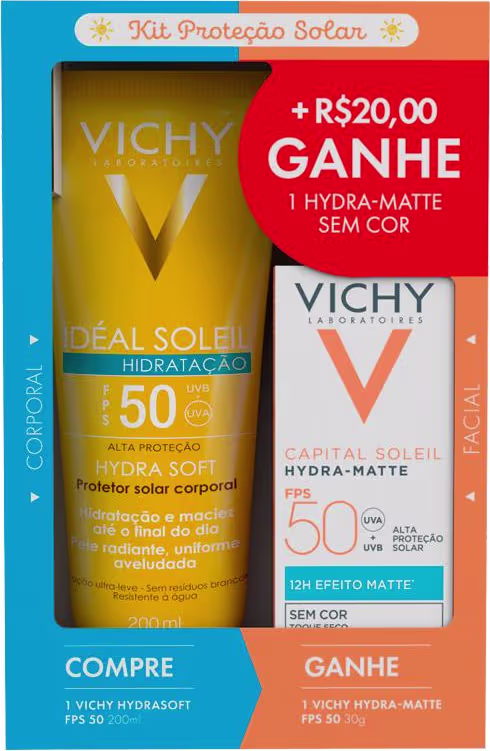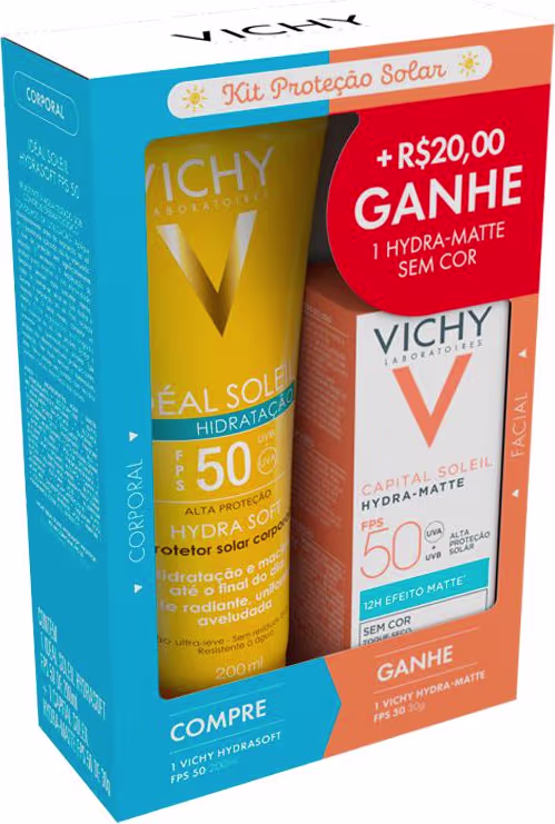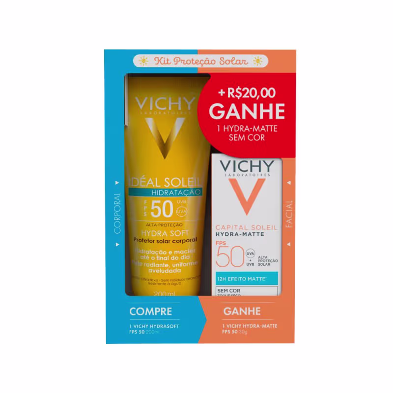 Kit Vichy Protetor Solar Corporal Hydrasoft Fps50 200 ml e Protetor Solar Facial Hydramatte Sem Cor Fps50
