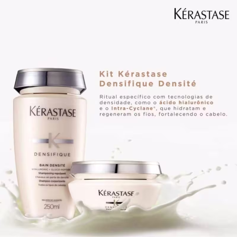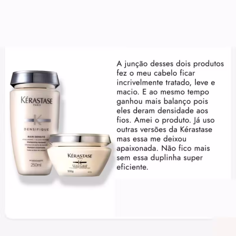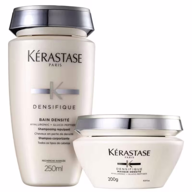 Kit Kérastase Densifique Densité Deux trata a estrutura das fibras e proporciona uma aparência de fios mais espessos para que cresçam de maneira saudável e com resistência. Proporciona ainda, brilho e maciez, mantendo o balanço natural e bonito do cabelo.