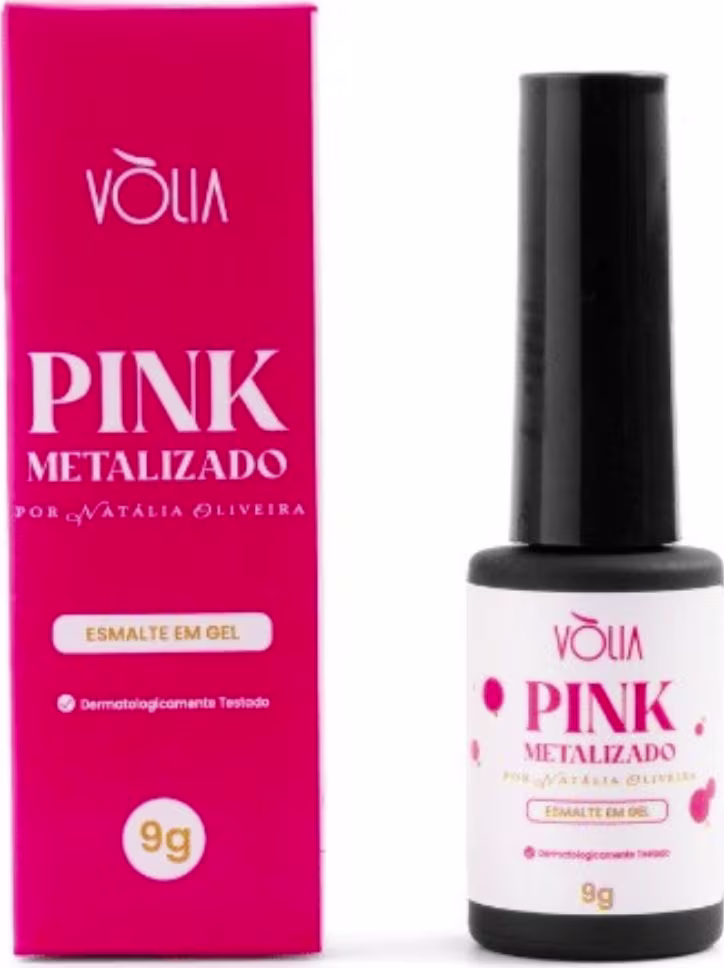 O esmalte em gel Pink Metalizado da Volia é a escolha perfeita para quem busca unhas elegantes e brilhantes.