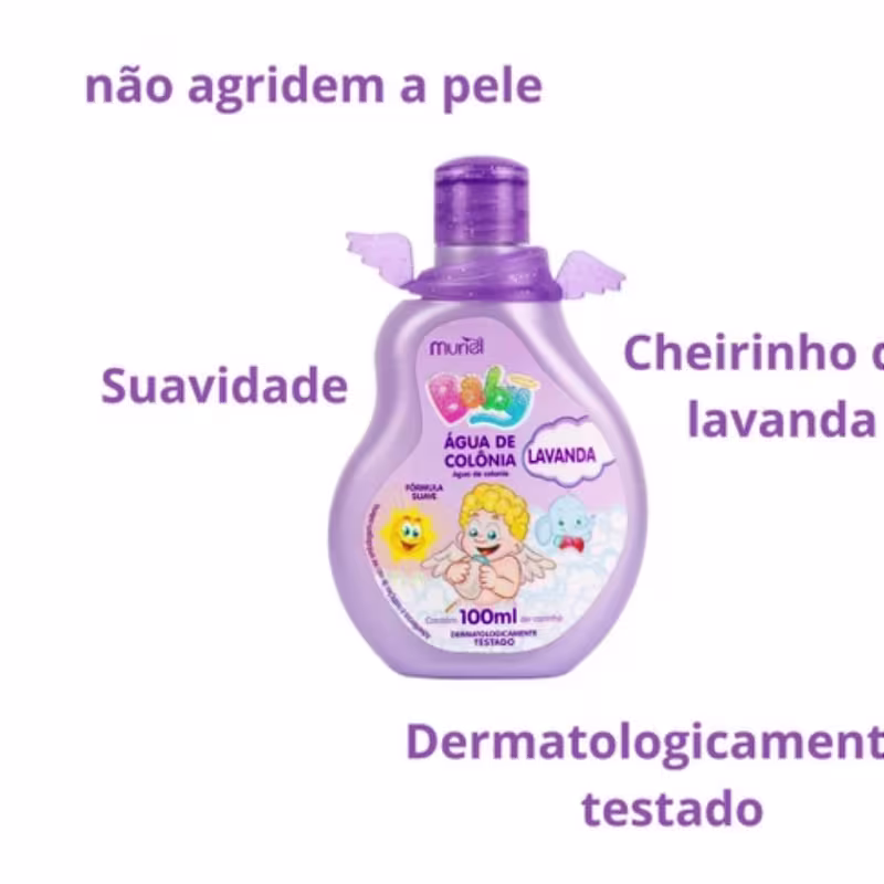 Desperte a magia dos sentidos com a Água de Colônia Muriel Baby lavanda. Cada nota suave de camomila cria uma sinfonia olfativa celestial, envolvendo seu bebê em uma fragrância pura e reconfortante.