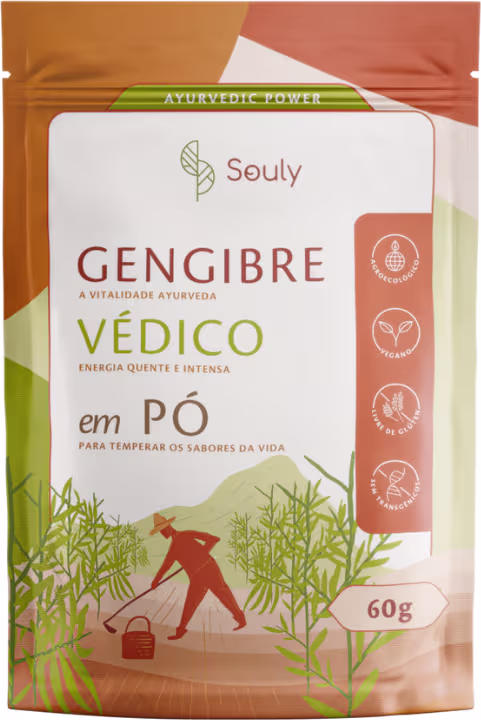 Não sei o CEPDos ricos e preservados solos indianos, o Gengibre Védico traz a força e a intensidade de uma das principais especiarias do mundo à linha premium de superfoods Souly.