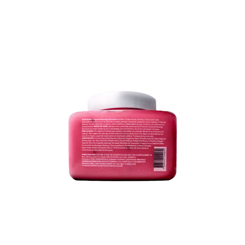 Não sei o CEPO Esfoliante Corporal Morango Sensation remove células mortas, hidrata e nutre a pele. Com antioxidantes e vitamina C do óleo do morango, protege e revitaliza, deixando a pele radiante. O óleo de girassol, rico em vitamina E, nutre, suaviza e melhora a elasticidade, deixando a pele macia e rejuvenescida.
