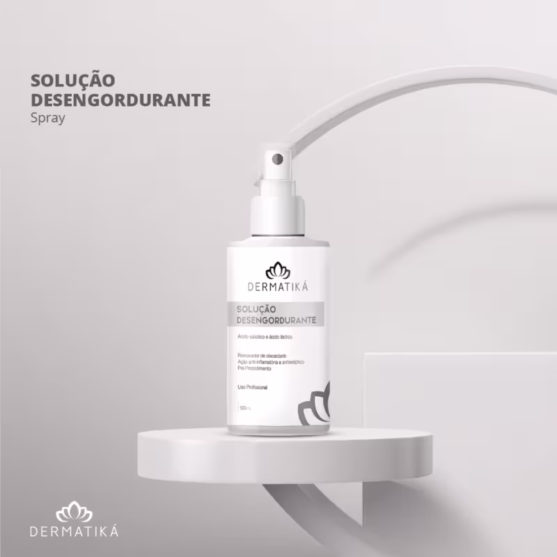 Solução removedora de oleosidade, com ação anti-inflamatória e antisséptica, ideal para pré-procedimento.