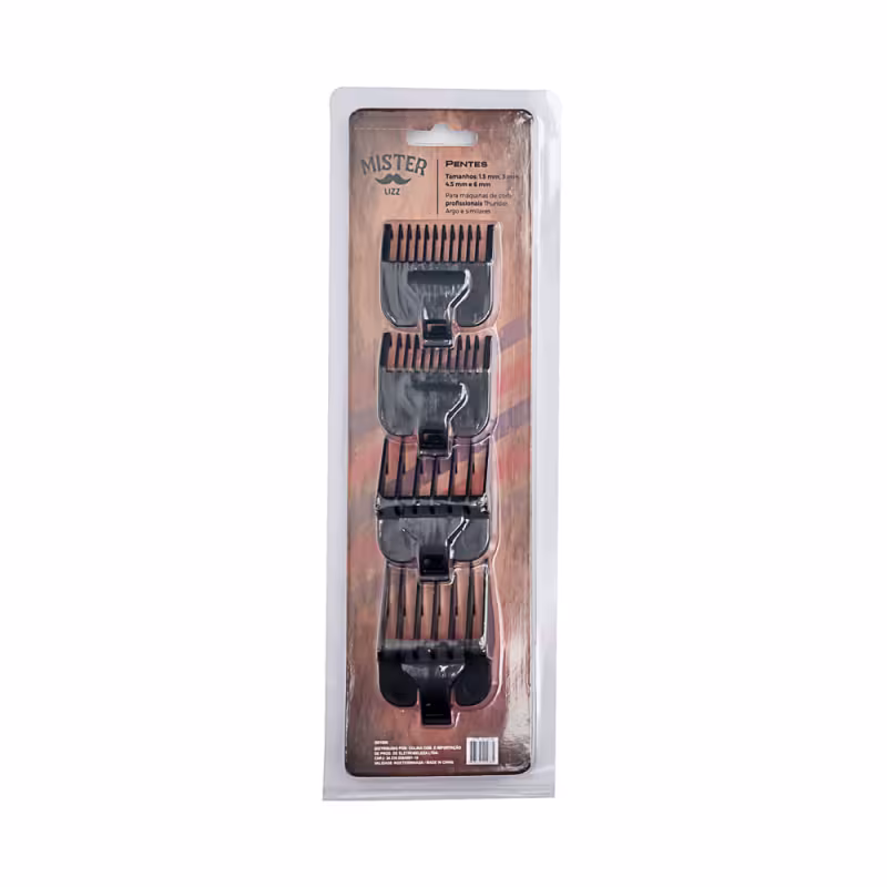 Não sei o CEPObtenha cortes impecáveis e personalizados com o kit de 4 pentes para máquinas de corte Thunder, Argo e similares! Feitos em material ABS de alta qualidade, esses pentes garantem durabilidade e precisão em cada corte.