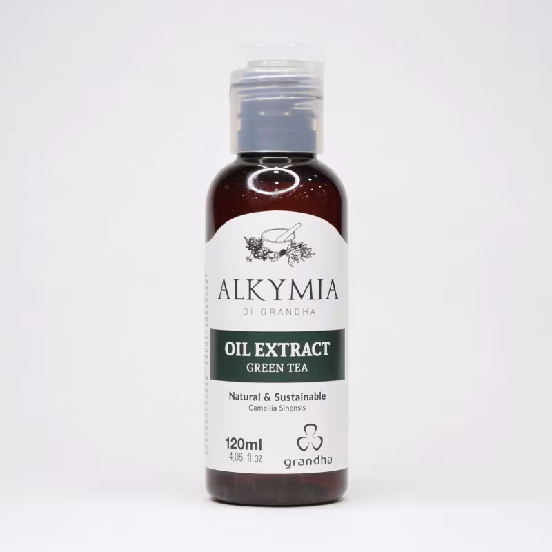 O extrato oleoso de chá verde é produzido a partir da infusão das folhas da planta Camellia sinensis e é chamado de verde porque suas folhas sofrem pouquíssima oxidação durante seu processamento. Este extrato possui 4 poderosos grupos de polifenois, conhecidos como catequinas (EC, ECG, EGC e EGCG. É rico em taninos, que diminuem as taxas de LDL (colersterol ruim), fortalecendo as artérias e veias, a fim de contribuir à prevenção de doenças cardíacas e circulatórios. Também possui manganês, potássio, ácido fólico, vitaminas C, K, B1, B2 e alta dosagem de cafeína. Possui propriedades antioxidantes, adstringentes, anti-inflamatórias, antibacterianas, antipilêmicas, hipotensivas, antidiabéticas e antimutagênicas.