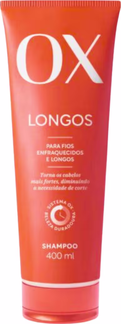 A Linha OX Longos é a ideal para cabelos enfraquecidos. Isso porque a combinação da Biotina e o Óleo de Rícino com o Sistema OX Beleza Duradoura, é a fórmula certa para nutrir os fios auxiliando no crescimento saudável dos cabelos, diminuindo a necessidade de corte por muito mais tempo. A Biotina é uma vitamina do complexo B que auxilia na absorção de outros nutrientes, muito importante para o cabelo e o couro. O óleo de Rícino possui vitaminas e minerais, propriedades anti-inflamatórias e antioxidantes, que contribuem para o fortalecimento capilar. Combinação que auxilia no combate à queda e quebra dos fios proporciona crescimento saudável. O Sistema OX Beleza Duradoura é uma tecnologia internacional, capaz de liberar sequencialmente os ingredientes, proporcionando um tratamento prolongado aos fios por 120 horas*. Para cabelos saudáveis, macios e com brilho da raiz às pontas.
