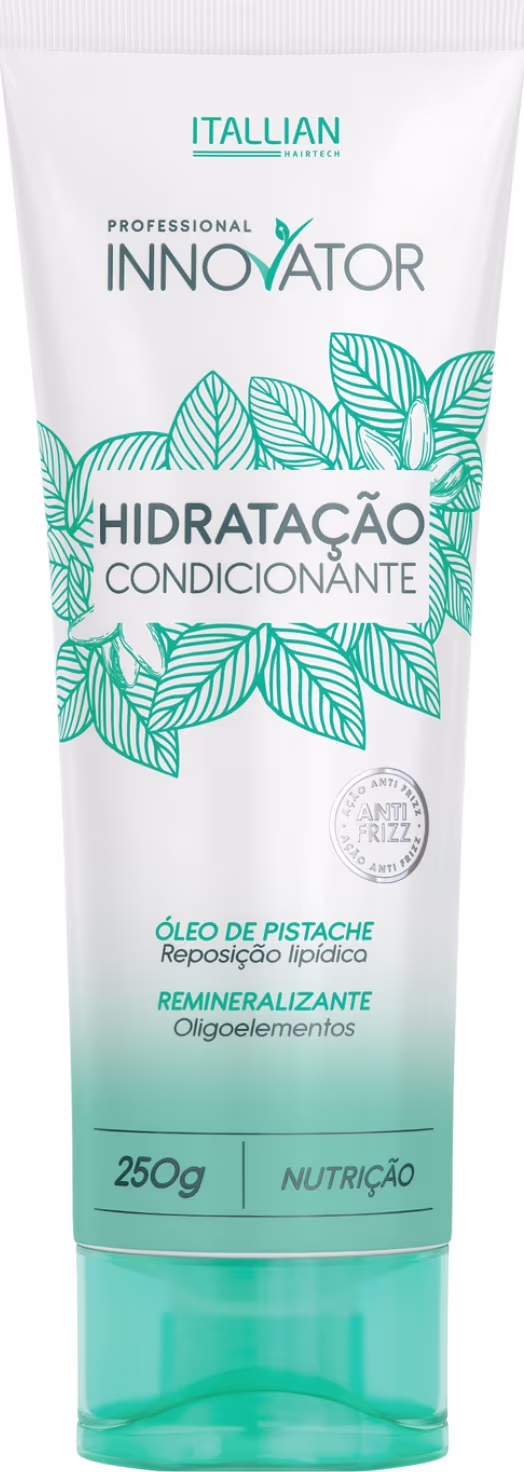 A Hidratação Condicionante Innovator é um produto altamente nutritivo que hidrata e condiciona os cabelos em poucos minutos. Sua fórmula contém ativos tecnológicos como o óleo de pistache, que proporciona maleabilidade, evita a perda de hidratação, nutre a fibra capilar e alivia a irritação do couro cabeludo. Além disso, sua composição conta com oligoelementos extraídos da água do mar que reforçam as ligações de hidrogênio e promovem o estímulo celular nos folículos pilosos. Para completar, o blend vegetal de babaçu, coco e soja reorganiza as cutículas, protege os cabelos das agressões externas e confere brilho acentuado. O modo de uso é simples: após lavar os cabelos com o Shampoo sem Sulfato Innovator, basta aplicar a Hidratação Condicionante no comprimento e pontas, deixar agir por 3 a 5 minutos e enxaguar. Para quem deseja escovar os cabelos com secador, recomenda-se o uso do Sérum Remineralizante Innovator. Em resumo, a Hidratação Condicionante Innovator é um produto completo que oferece diversos benefícios aos cabelos, desde hidratação profunda até proteção contra agressões externas e brilho radiante.