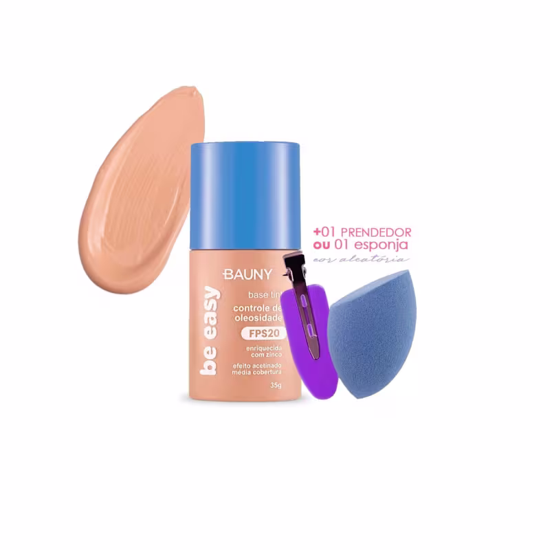A Base Be Easy é uma base Tint de efeito acetinado enriquecida com Zinco - um poderoso ativo que atua no controle de oleosidade excessiva da pele, tem efeito calmante anti-inflamatório e ajuda no controle da acne. Além disso, está disponível em 12 tonalidades.