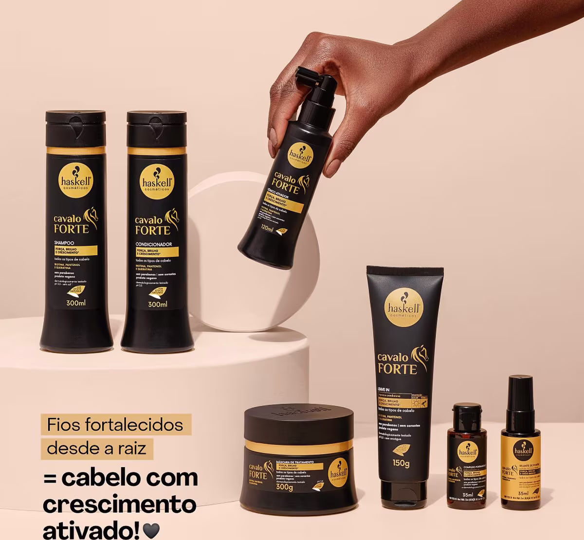Kit Haskell Cavalo Forte Shampoo Condicionador Leave-in e Tônico (4 produtos)