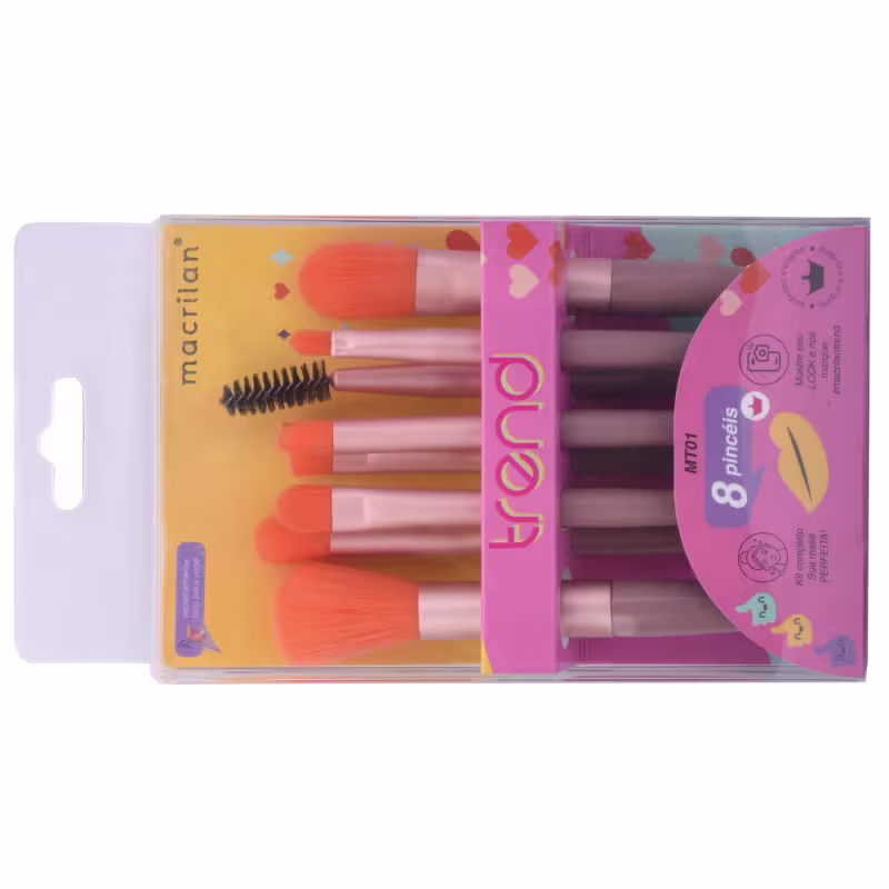 O Kit pincel para maquiagem Macrilan, uma empresa brasileira, foi especialmente desenvolvido para uma maquiagem completa. Os Pincéis são fabricados com cerdas sintéticas macias, a fim de proporcionar aplicação homogênea, resultado leve e uniforme.
