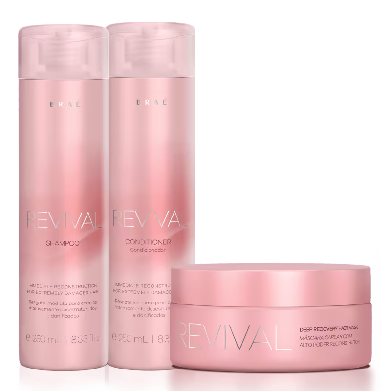 O Kit Braé Revival age internamente nos poros do cabelo, a fim de dar estrutura às áreas comprometidas. Suas fórmulas criam uma camada protetora em torno do fio para deixar o cabelo mais brilhante e resistente, com uma vida nova.