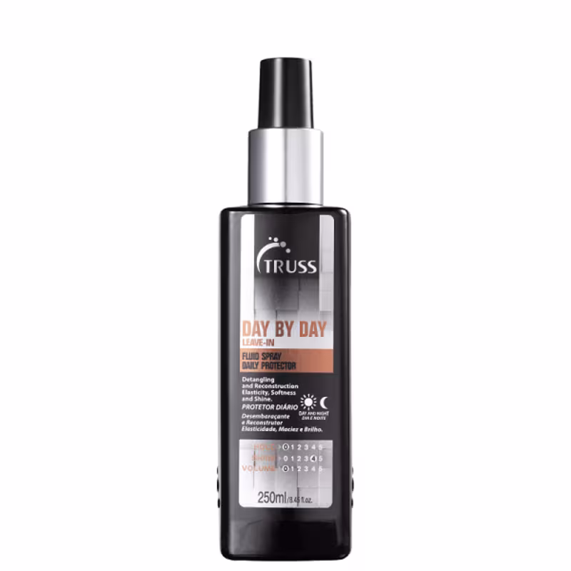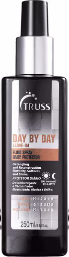 Truss Day By Day - Leave-in 250ml: nutre e ajuda na reconstrução das áreas fragilizadas. Ele recupera a elasticidade, o brilho e a maciez no seu cuidado diário com o fio, seja de dia ou à noite.