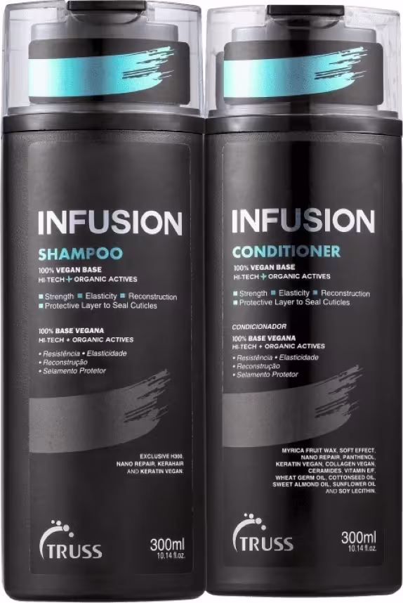 Kit para cabelos secos, opacos e quebradiços. Kit Truss Infusion Duo promove hidratação, fortalecimento e flexibilidade para fios mais saudáveis e resistentes.