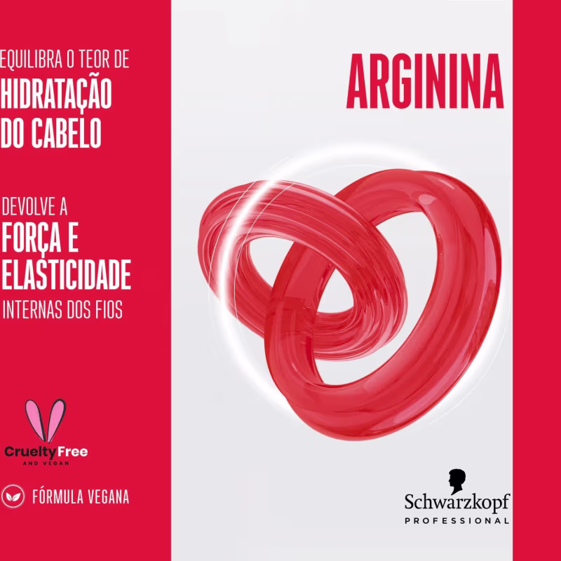 Arginina: a L-arginina é um α-aminoácido proteinogénico e pode ser encontrada no cabelo como um bloco de construção essencial. A principal função da L-arginina é ser usada para construir proteínas. O cabelo é profundamente reconstruído e protegido por um escudo antifricção reativo. Como resultado, o cabelo fica instantaneamente e visivelmente reparado, fortalecido, cheio de movimento, com brilho e maciez.