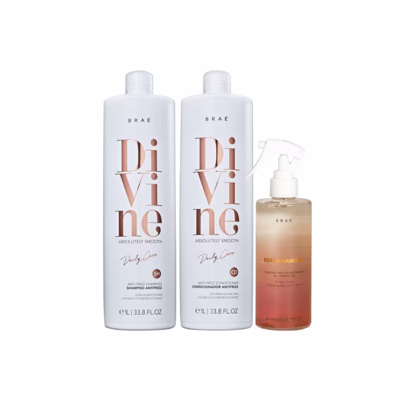 Kit para cabelos com frizz. O Kit Braé Divine Duo confere disciplina, desembaraço e hidratação aos fios durante o dia a dia.