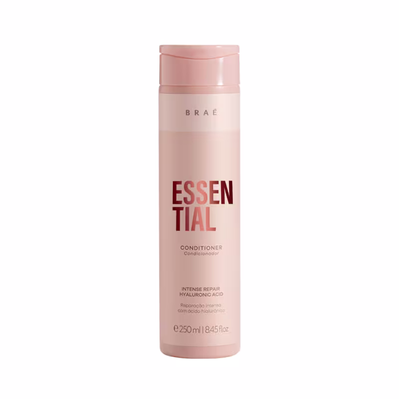 Braé Essential - Condicionador 250ml: possui ação de nutrição e reparação, promove hidratação progressiva e protege o cabelo contra agressões diárias e térmicas. Com ácido hialurônico, aminoácidos e complexo de óleos, os cabelos ficam macios e com brilho. Possui proteção térmica.