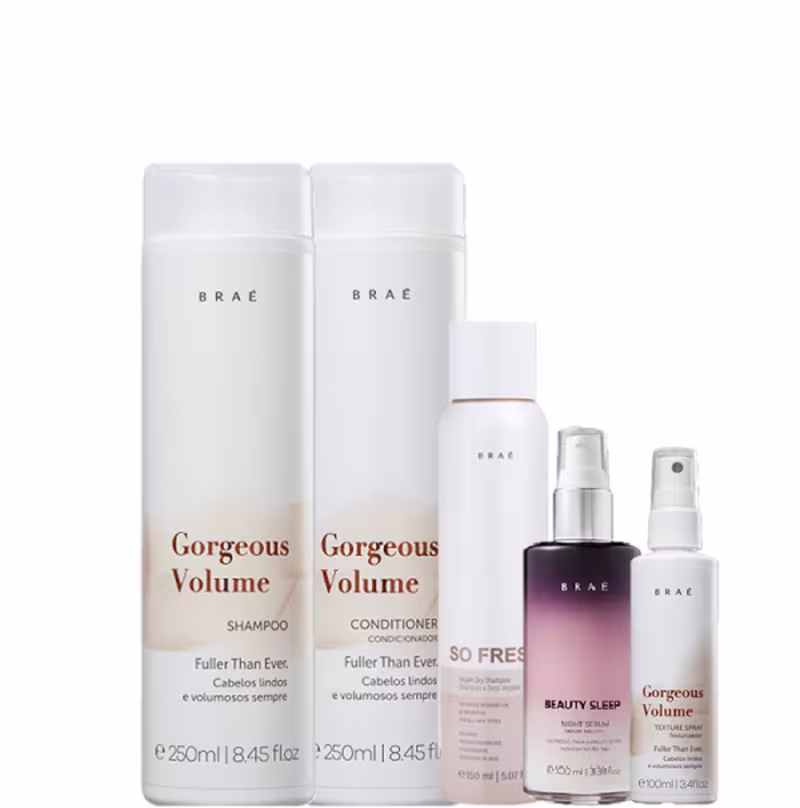 Os produtos do Kit BRAÉ Gorgeous Volume equilibram a oleosidade do couro cabeludo, fortificam e encorpam a fibra capilar, enquanto hidratam o cabelo. Suas fórmulas equilibram a oleosidade, proporciona mais brilho e volume aos fios.