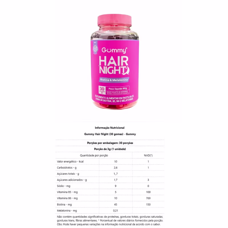 Gummy Hair Night (Melhora o Sono, Cabelo e Pele) 30 gomas Sabor Iogurte de Morango Ver mais ❯