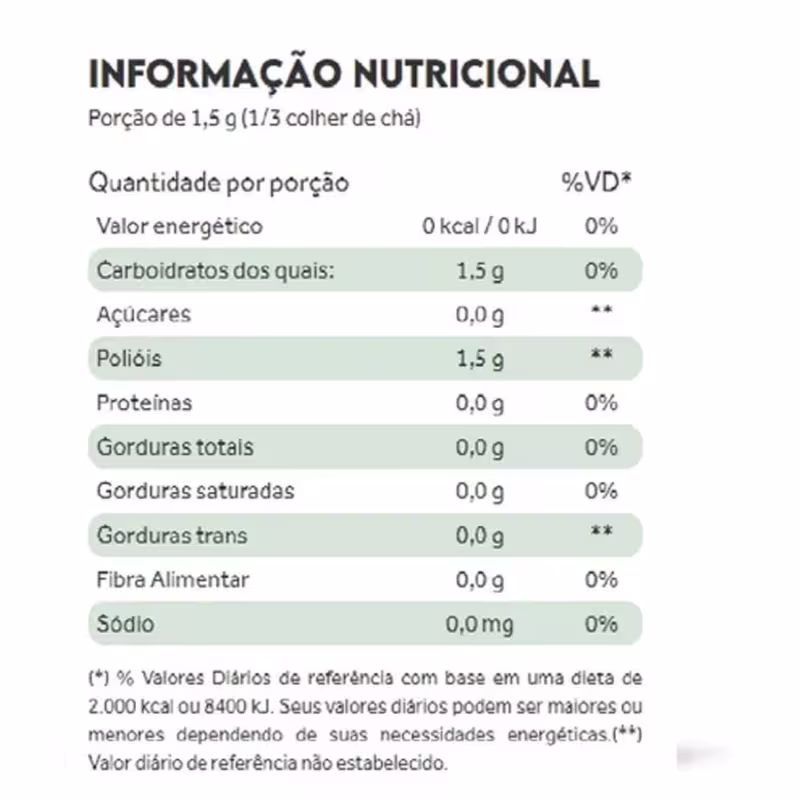 INGREDIENTES: Eritritol, Taumatina e Rebaudiosídeo A.