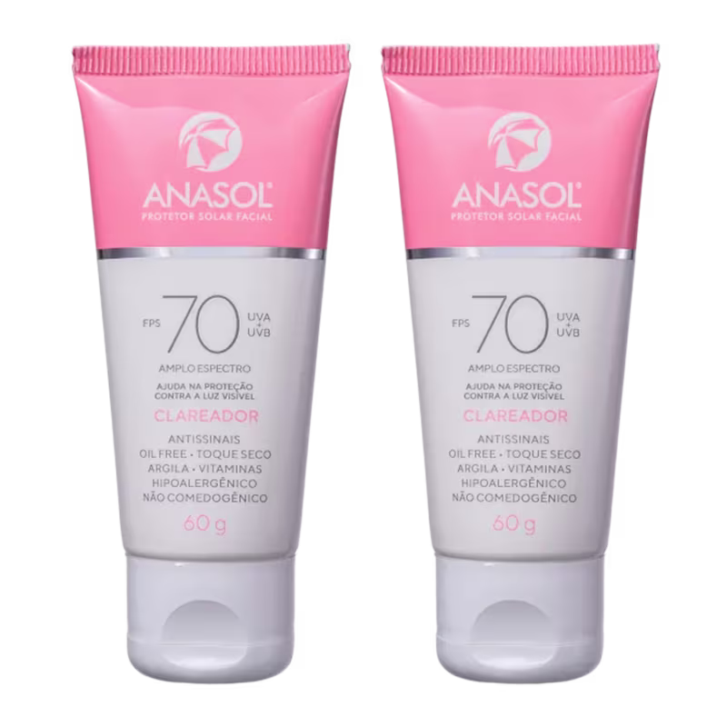 Anasol Protetor Solar Facial Clareador FPS 70 2Unidades 60g (Antissinais e Oil Free)