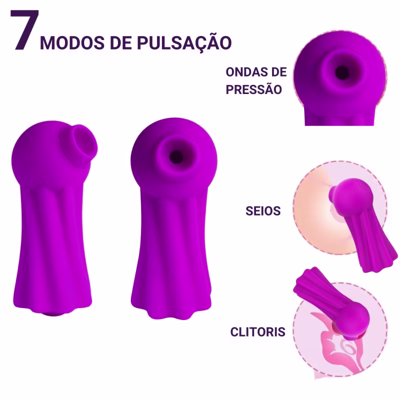 7 modos de Pulsações, o produto é macio ao toque ergonômico, o que facilita o manuseio e a estimulação, trazendo uma sensação prazerosa do uso.