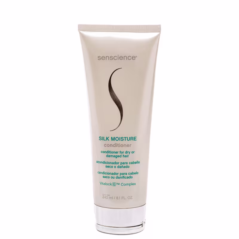 Senscience Silk Moisture Conditioner - Condicionador 240ml: condicionador para cabelos secos e danificados. Desembaraça e condiciona, hidratando os fios. Ele fortalece a fibra capilar e deixa o cabelo com uma maciez incrível!